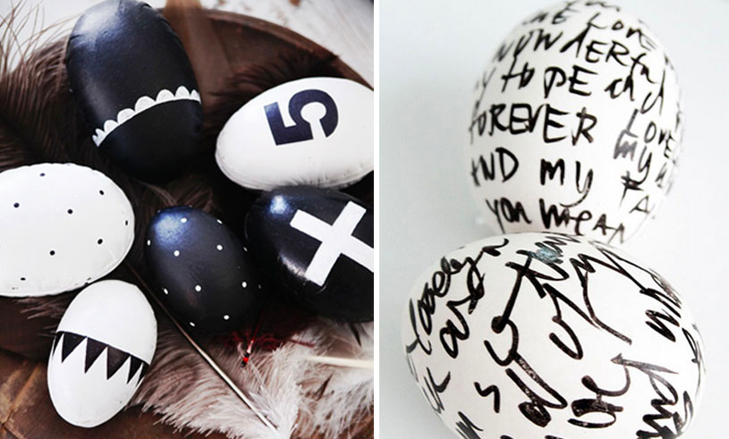 Påsken måste inte alltid vara färgglad! Ägg målade i modern, grafisk stil blir snabbt konstverk värda att visa upp för vänner och bekanta. Särskilt om du lägger dem i en liten korg i fönstret med lite fjädrar bredvid en vas med påskris. Använd en permanent penna och gå loss! Har du någon favoritdikt eller låttext? Inspireras av bilden nedan och skapa någonting alldeles speciellt. Om du har en förkärlek för ton-i-ton är det fantastiskt fint att måla med vit penna på bruna ägg.
