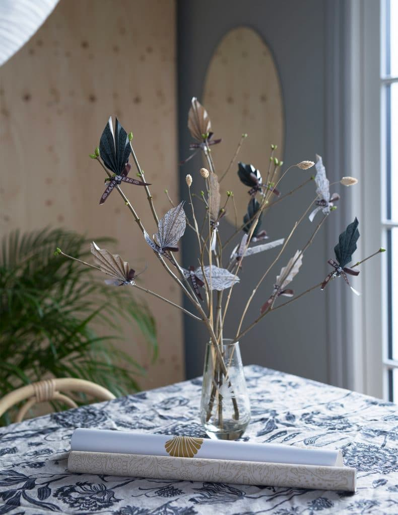 Har du nyligen tapetserat hemma? Oftast blir det ju lite över och det tycker vi bara är bra, annars hade du ju inte kunnat pyssla ihop dessa vackra påskfjädrar. Det är fint att ha både i rummet där tapeten redan är upphängd för att matcha, eller skapa en röd tråd in till nästa rum. Knyt fast dekorationerna på påskriset med ett litet band och känn hur våren återigen tar plats i ditt hem!